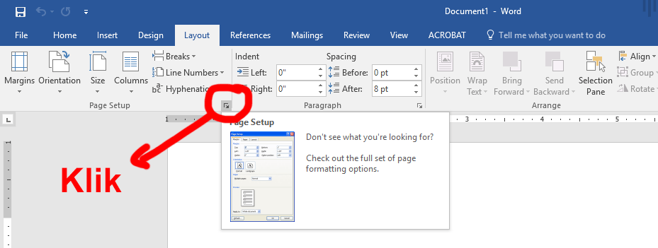 4. Klik tanda anak panah kecil yang terletak seperti gambar berikut.klik page setup