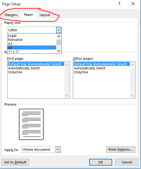 8. Setelah berubah menjadi sentimeter (cm), kalian akan lebih leluasa untuk mengatur ukuran layout-nya. Dalam pengaturan layout terdapat tiga tab utama yakni Margins, Paper, dan Layout.